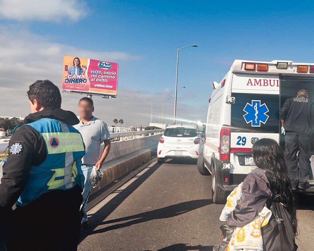 Un hombre fue trasladado a un hospital, luego de ser atropellado cuando se encontraba en el puente vehicular, ubicado en Prolongación Bernardo Quintana, en dirección a Plaza Patio.