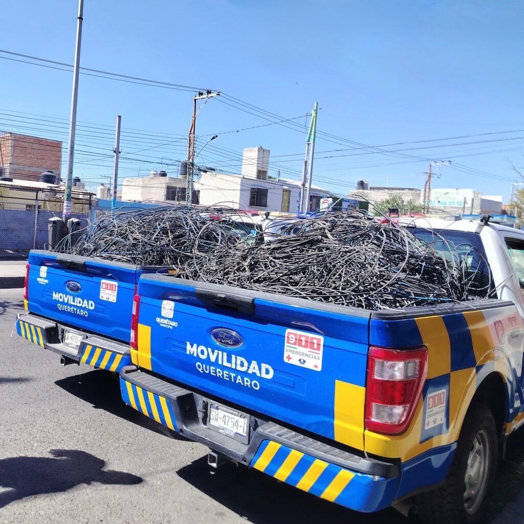 El Municipio de Querétaro, en coordinación con 14 empresas de telecomunicaciones, ha logrado retirar de la vía pública 24 toneladas de cableado en desuso.