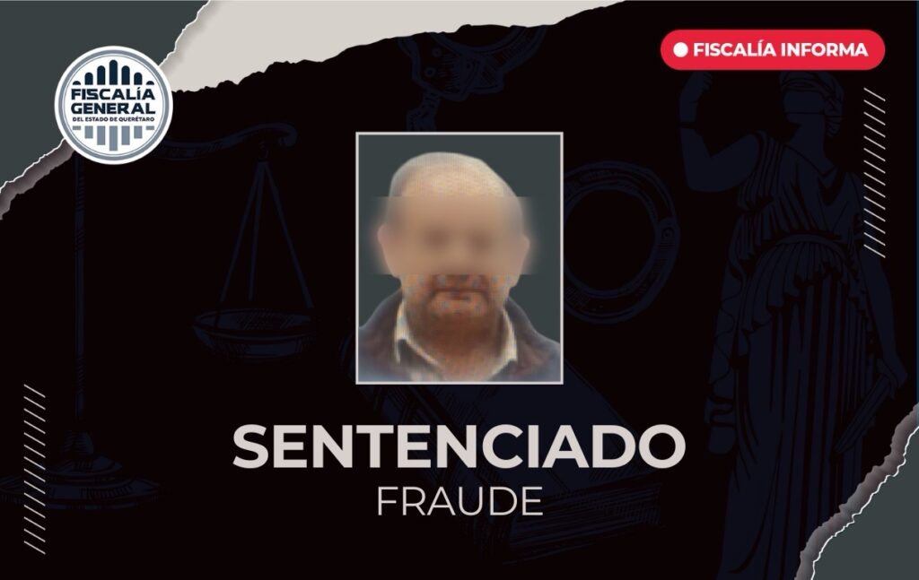 La Fiscalía de Querétaro obtuvo sentencia condenatoria en contra de Alejandro “N”, por su responsabilidad en el delito de fraude específico, al haberse ostentado falsamente como abogado para ofrecer asesoría legal y solicitar dinero a cambio de supuestos trámites judiciales.