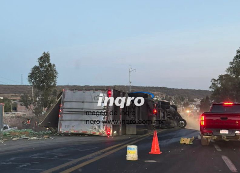 Severa carga vehicular, se registró sobre la carretera a San Miguel de Allende, en donde se reportó una aparatosa volcadura de un tráiler.